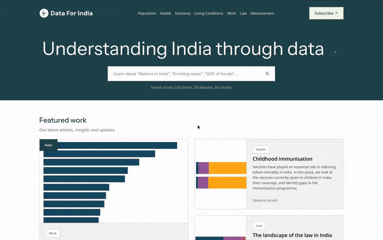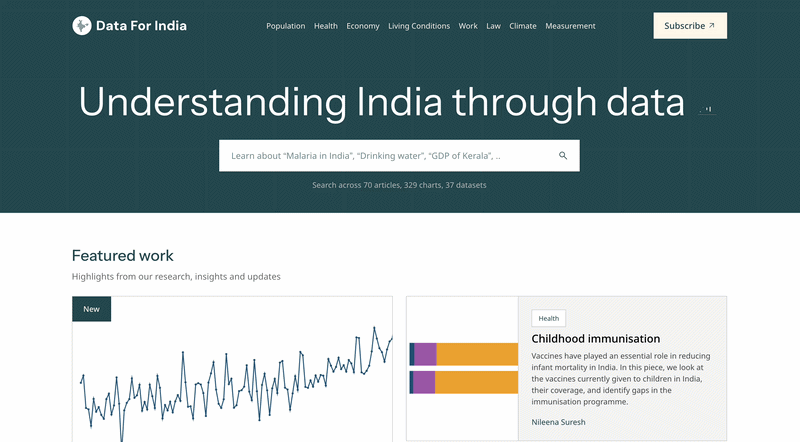 While much has changed in how you engage with the Data For India platform, our core commitment remains unchanged: providing rigorous and in-depth analyses to advance the understanding of India through data.
